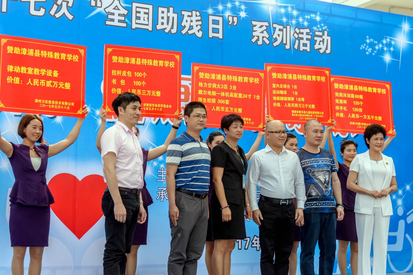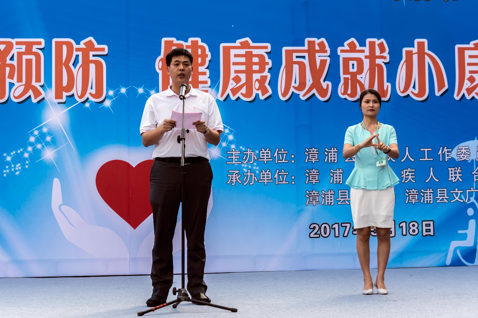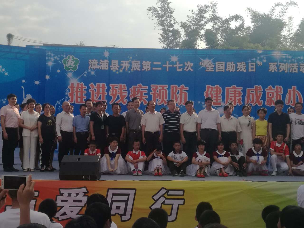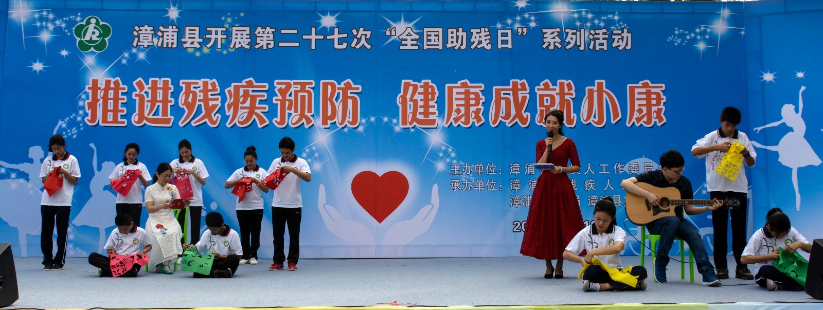 这次漳浦县举办助残日系列活动是由漳浦县残疾人工作委员会主办,漳浦县残疾人联合会、漳浦县教育局、漳浦县文广体局共同承办的,推进残疾预防,健康成就小康为主题,活动现场在特殊教育学校。