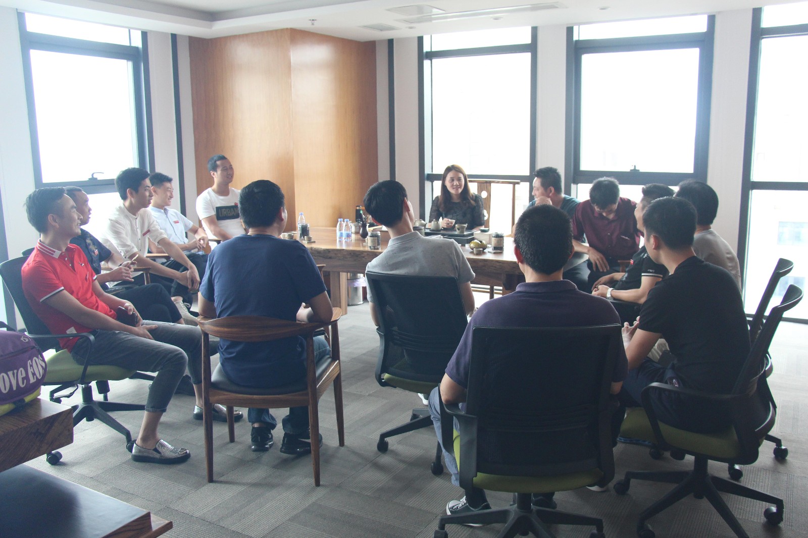 在福建中加达出入境服务有限公司座谈,陈总万林的太太为大家泡茶