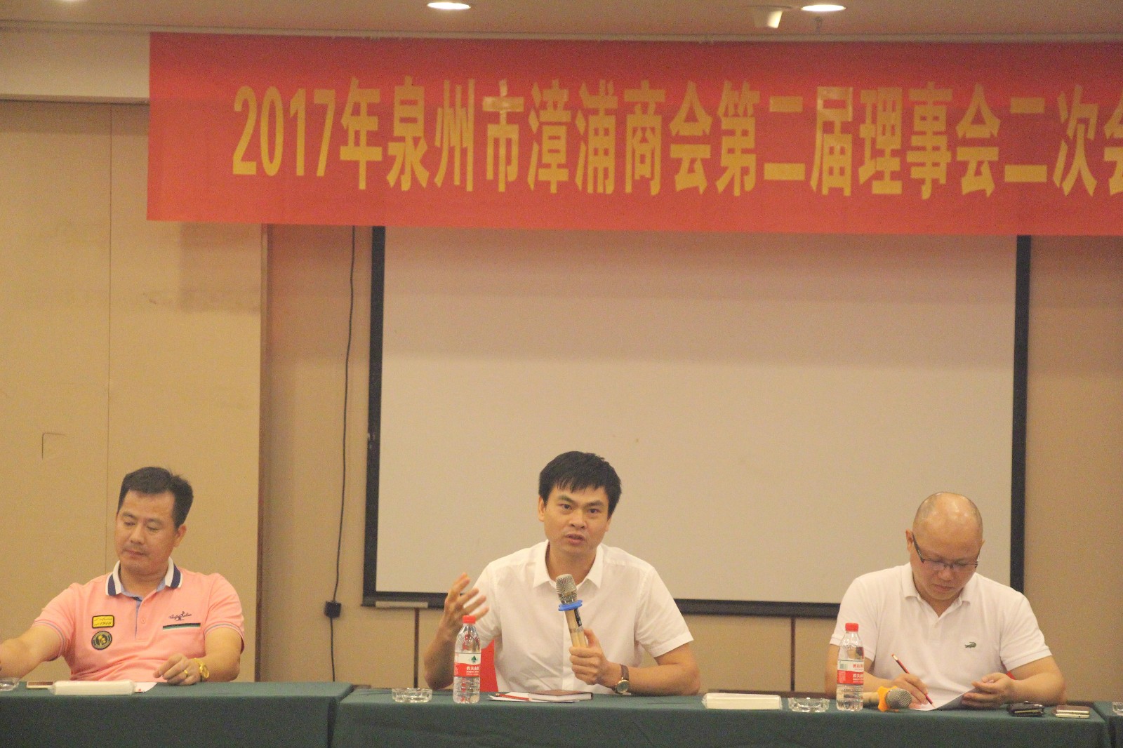 9月23日,泉州市漳浦商会在晋江爱乐凯尔顿精品酒店举办中秋活动。活动分两步进行。首先,召开第二届理事会二次会议,参加会议的理、监事会成员有46人。 会议就商会工作进行商讨,主要围绕如何发挥商会平台作用,为会员提供了解政府的优惠政策,助力企业发展;进一步完善《泉州市漳浦商会理事会值班制度》和《泉州市漳浦商会关于涉及婚丧喜庆礼遇的规定》 ,促进商会工作更好的开展。李佳添会长提出主导性意见,陈武奇执行会长和洪栋梁秘书长发表了建设性意见,并和大家进行友好的互动。与会成员畅所欲言,各抒己见,发表了很好的见解和建议。通过酝酿协商,达成基本共识,对今后商会工作将更加丰富、扎实,更加卓有成效。