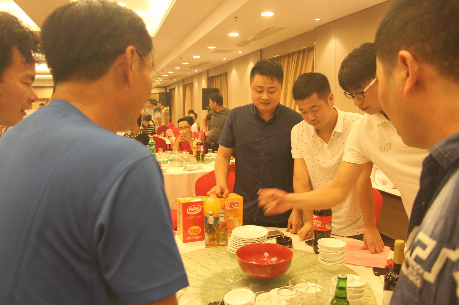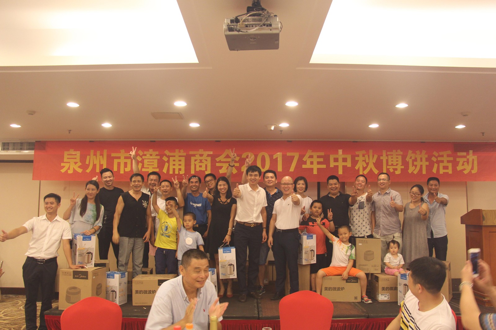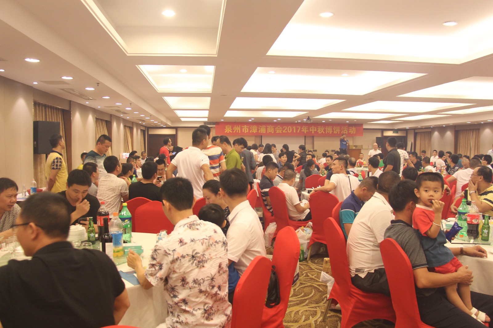 会后,举办全体会员参加的中秋博饼活动。这次活动邀请了本会荣誉会长、顾问乡贤和预备入会的漳浦籍在泉经商的精英代表。现场180人济济一堂,欢声笑语,18组同时展开,商会充满了和睦、和谐大家庭氛围,感受闽南民俗文化,体验敢于夺魁的乡情乐趣。博得状元者集中领奖,会长和“状元”们合影。