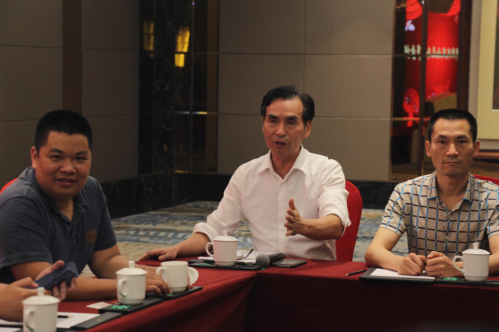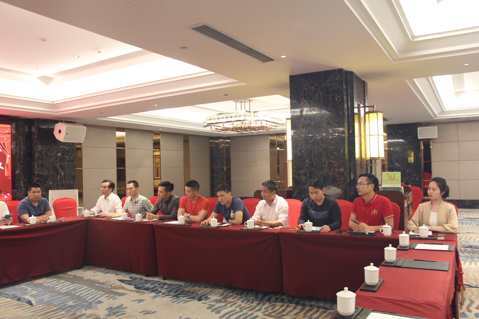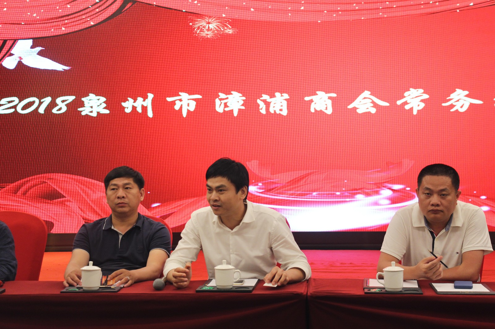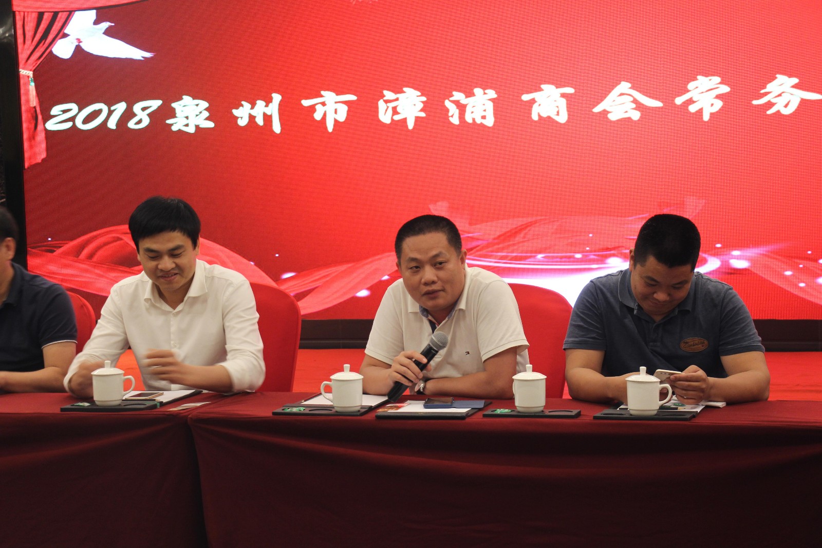 4月11日晚,泉州市漳浦商会在晋江爱乐国际酒店召开常务理事会议。 参加会议的有21名常务理事会成员,李佳添会长主持会议,常务副会长陈瑞章、洪栋梁(兼秘书长)、何伟智出席会议。