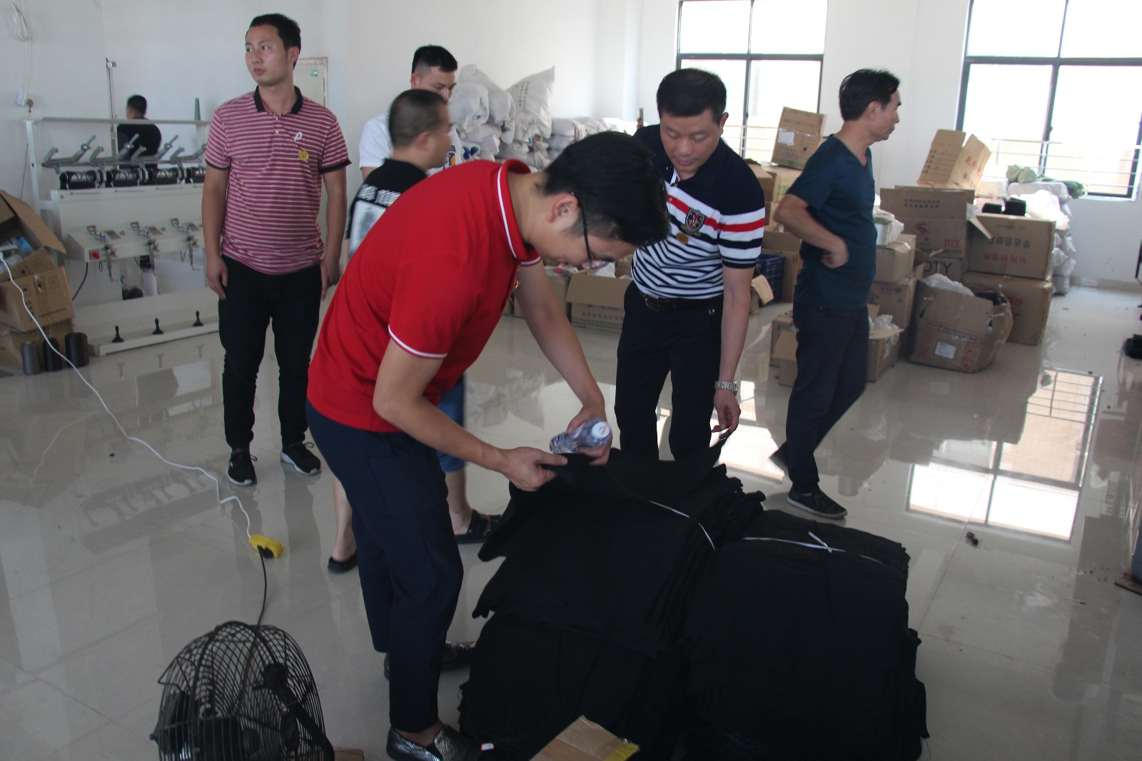 在晋江新塘街道上郭社区走访余国发的洋洲罗纹制造厂