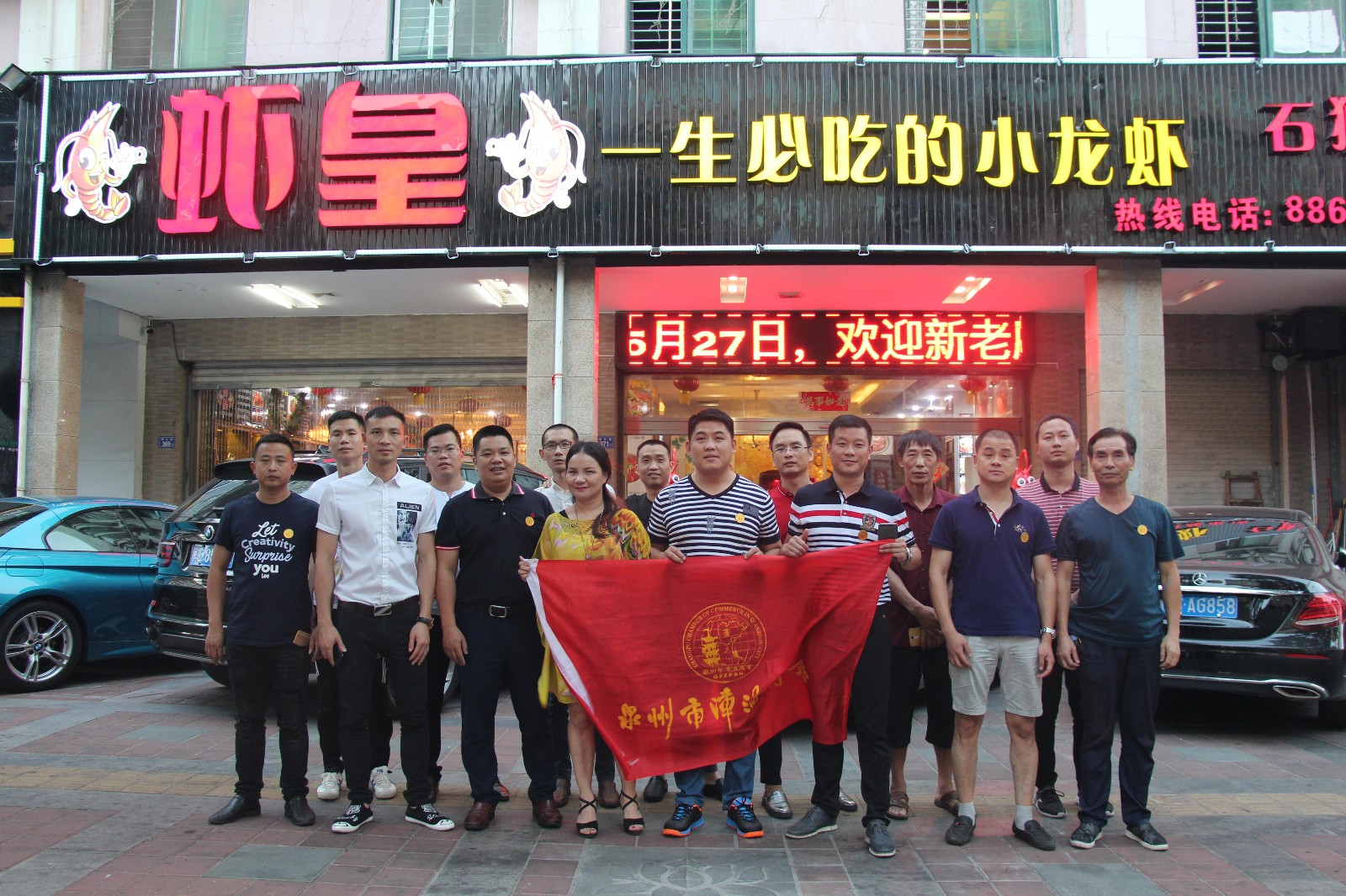 在石狮市濠江路走访理事陈淮江(图右4)的虾皇小龙虾餐饮店。晚餐品尝了特色菜小龙虾。