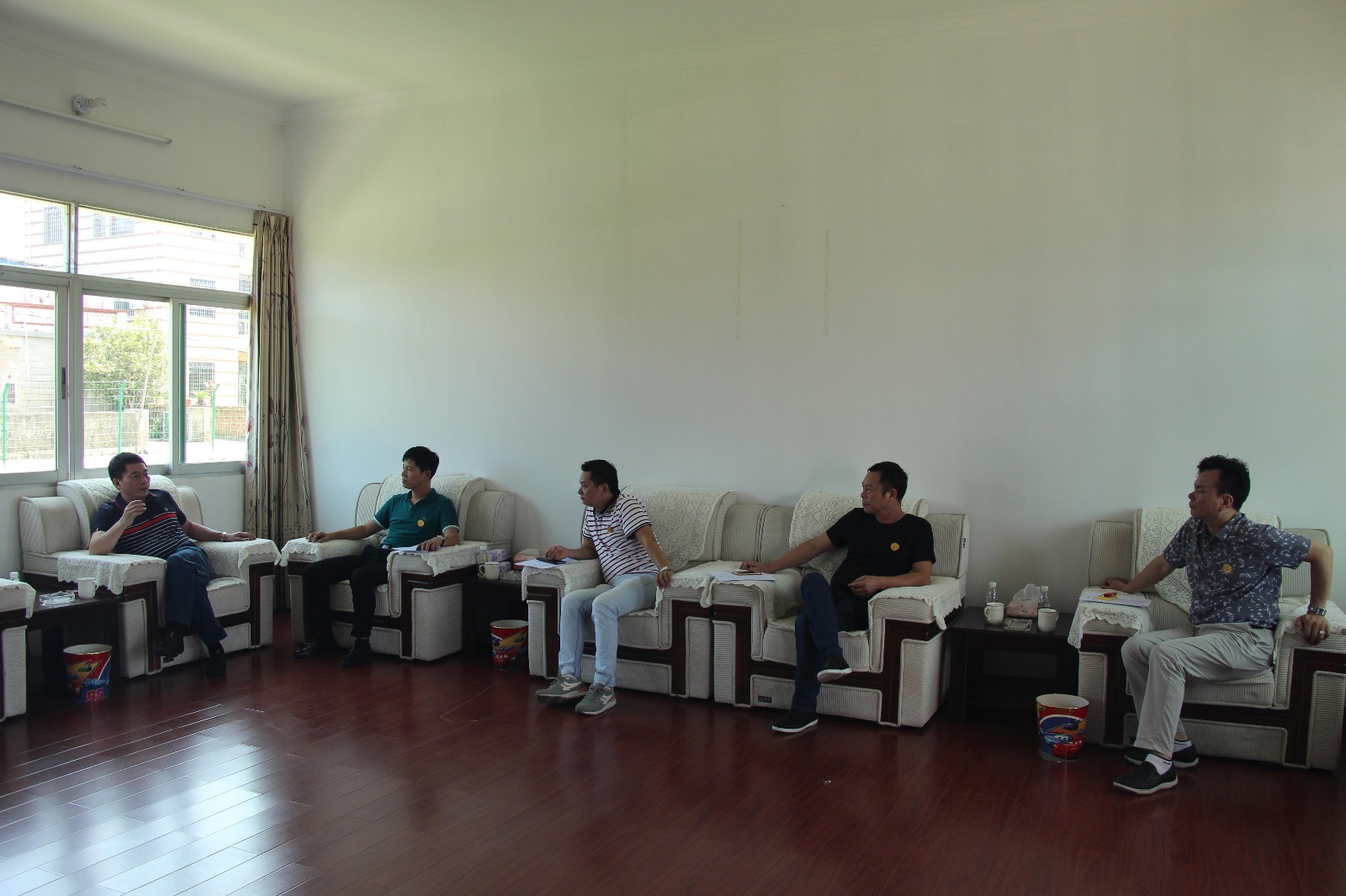 上午到石榴镇。在镇党委会议室,党委书记李伟国(右1)、副书记吴锦洲(左1)、会长李佳添(中)。