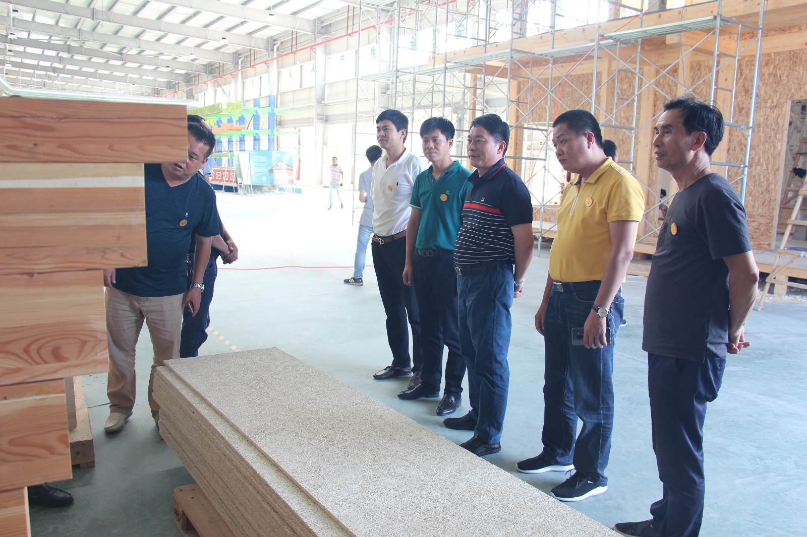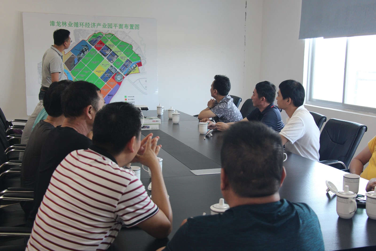 镇党委书记 陈湘海、镇人大主席蔡炳煌带我们先到漳龙木业科技公司参观,公司刘总(右2)做介绍。