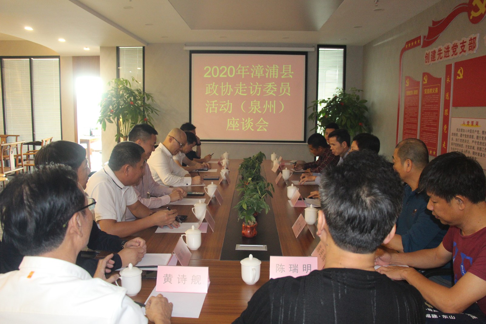 泉州市漳浦商会的漳浦县政协常委陈忠辉(商会荣誉会长)、政协委员陈武奇(商会党支部书记、执行会长)、黄桂木(商会荣誉会长)、张小聪(商会常务副会长)、陈瑞章(商会常务副会长),商会常务副会长陈瑞明、执行秘书长黄诗舰等参加了座谈走访活动。