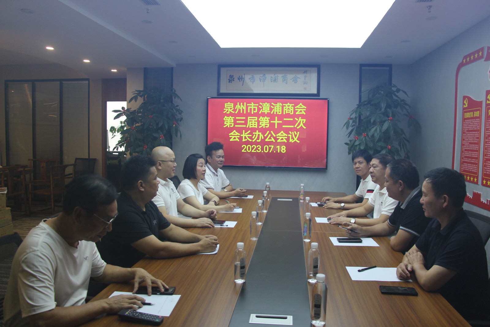 7月18日下午,泉州市漳浦商会第三届第十二次会长办公会议在商会会议室召开。会议由何伟智会长主持,陈武奇、陈瑞章、洪栋梁、林汉添、陈瑞明、陈计智、陈春凰、陈永省、李炳辉出席,秘书处执行秘书长黃诗舰、秘书陈素卿列席。