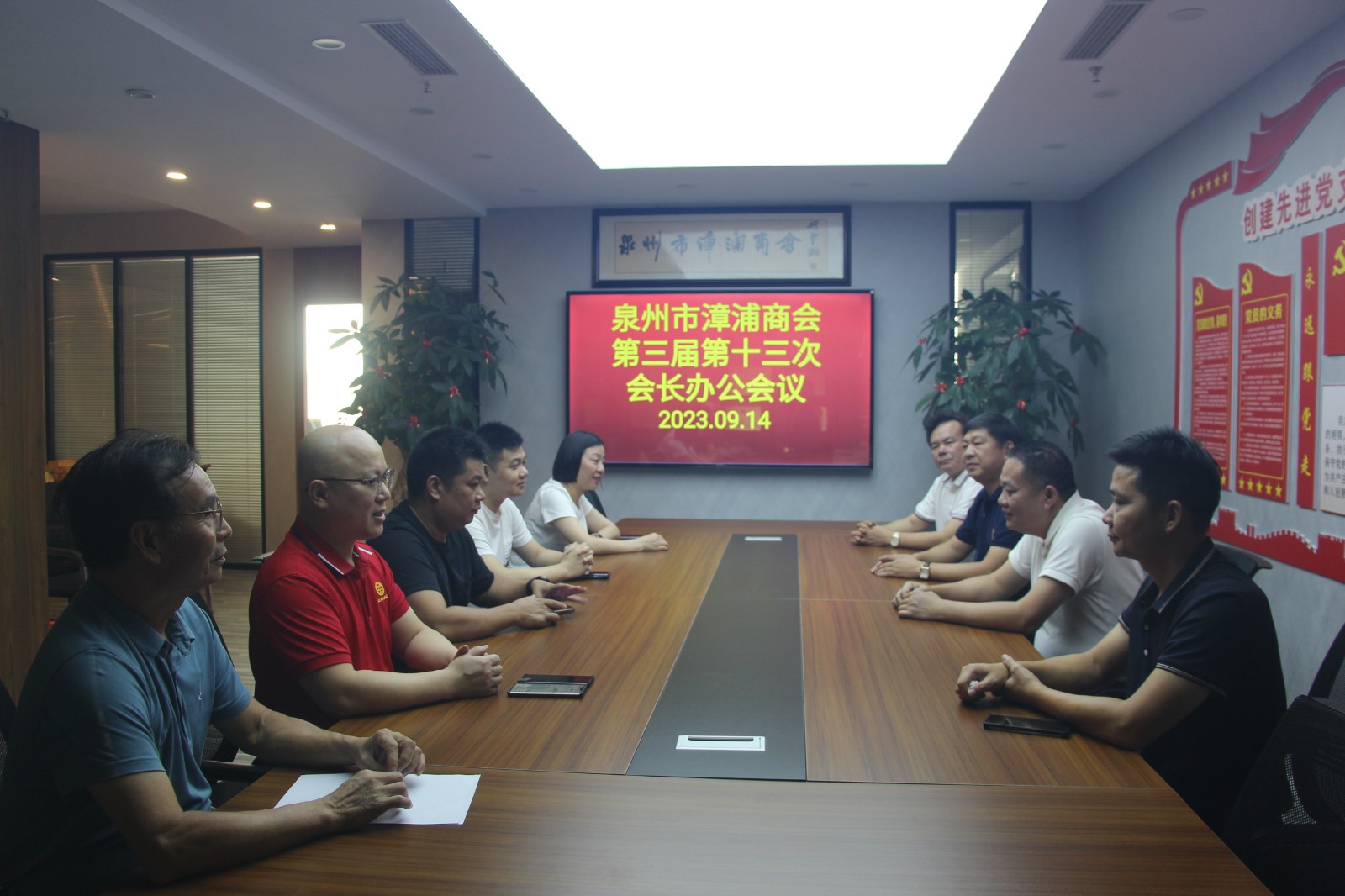 9月14日下午,泉州市漳浦商会第三届第十三次会长办公会议在商会会议室召开。何伟智会长主持会议,陈武奇、陈瑞章、洪栋梁、邱俊晴、陈瑞明、陈计智、陈春凰出席,秘书处执行秘书长黃诗舰、秘书陈素卿列席。