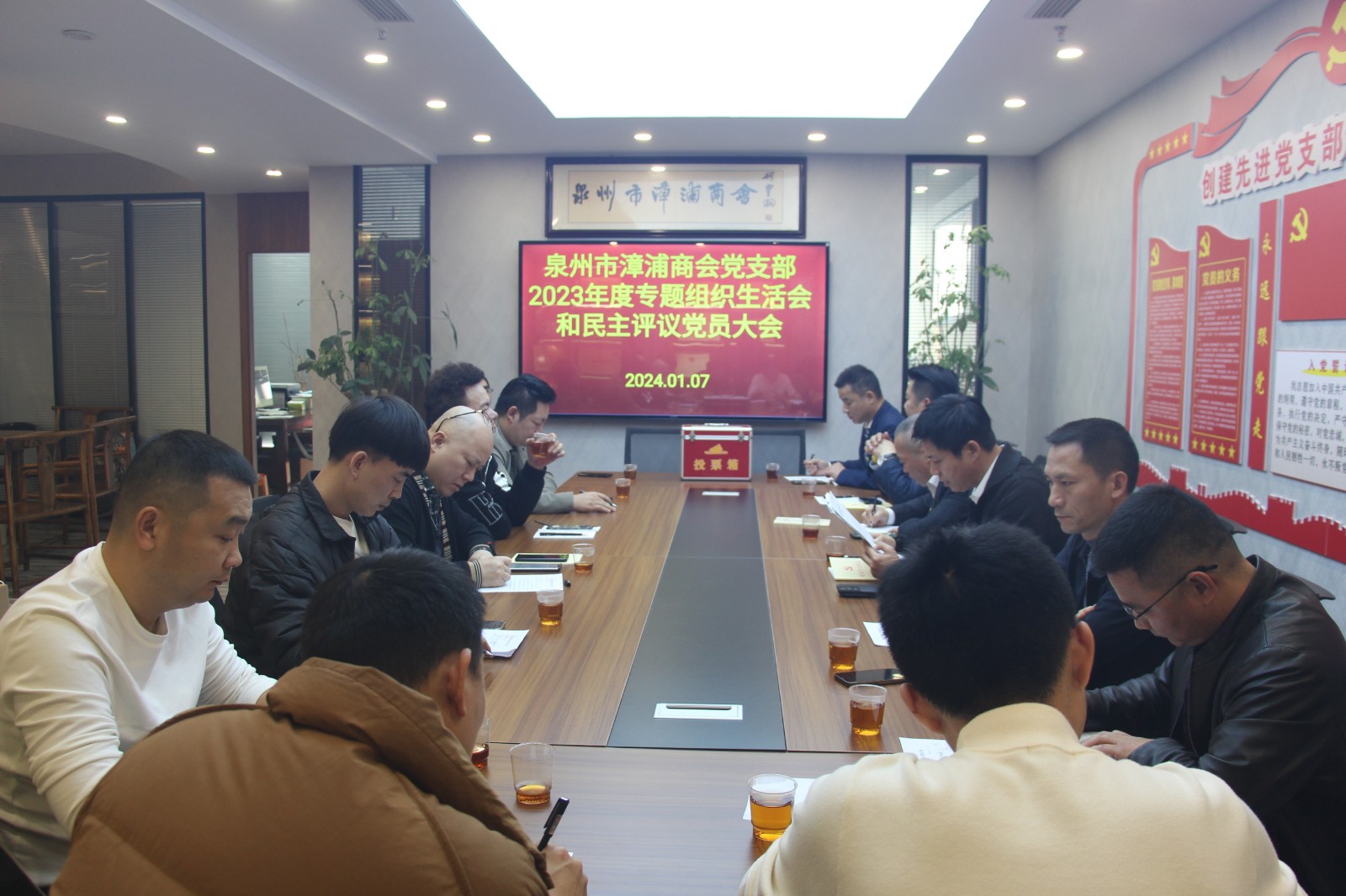 1月7日,泉州市漳浦商会党支部按照泉州市工商联社会组织行业党委的部署,召开2023年度“学习贯彻习近平新时代中国特色社会主义思想”主题教育专题组织生活会和民主评议党员大会。组织关系在支部的14名党员,9名到会。商会常务副会长陈瑞明、秘书处执行秘书长黄诗舰、2名入党积极分子等列席会议,泉州市工商联社会组织行业党委组织委员林振川莅临指导,李炳辉书记主持会议。