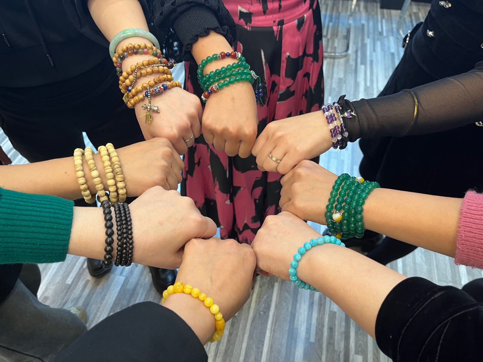 本次活动,副会长何巧玲提供了制作手链的相关材料,热情的向大家传授串珠子技术。女会员们根据自己的喜好,亲手设计一条自己的专属手链。通过活动,丰富了女会员们的文化生活,体会到了串珠子的乐趣,加深了姐妹情,增强了商会女同胞们的凝聚力。