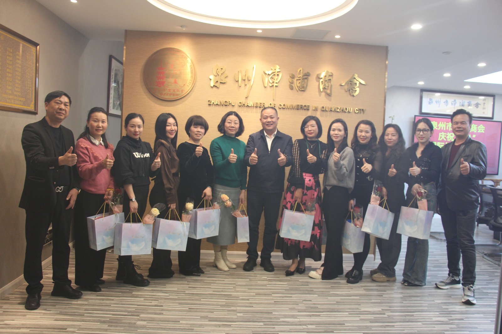 会长代表商会向女会员送鲜花和礼品,祝愿女会员们永远青春美丽,事业发达!