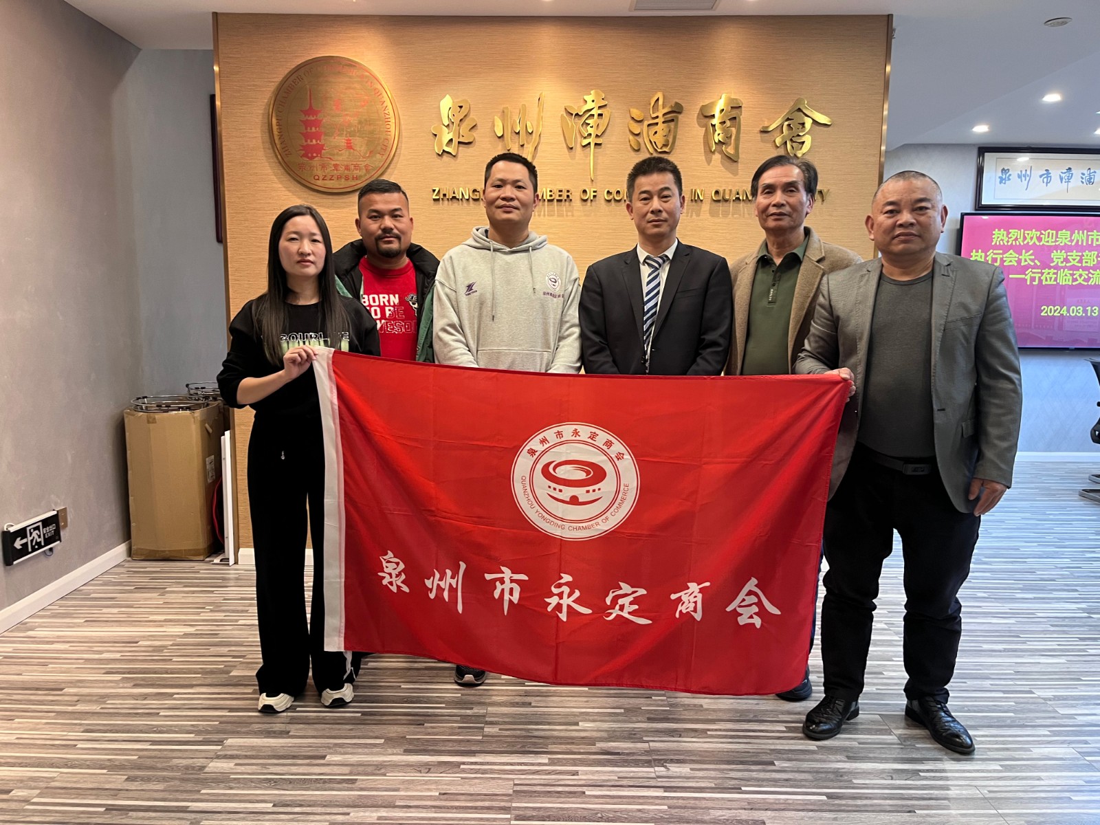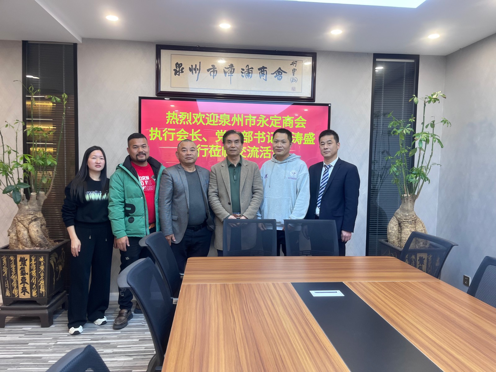 3月13日下午,泉州市永定商会党支部书记、执行会长邱涛盛一行到访本会。随行的有副秘书长吴清奎、会员徐定清、专职秘书魏丽华。