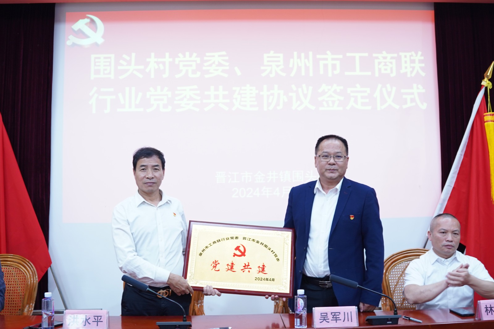 泉州市工商联社会组织行业党委与围头村党委双方交流座谈。会上观看了围头村有关视频,详细了解了围头从一个小渔村发展成模范村、先进村的过程,并了解围头村海上养殖、旅游等产业的发展情况;双方各自介绍了党建工作经验,现场签订《泉州市工商联社会组织行业党委-围头村党委共建协议》;围头村党委赠送书籍《围头记忆》、《围头地情研究》;战地小老虎洪建财以亲身经历上了一堂红色微党课。大家还参观了围头村战地文化公园、毓秀楼炮战指挥所、党建文创园等。