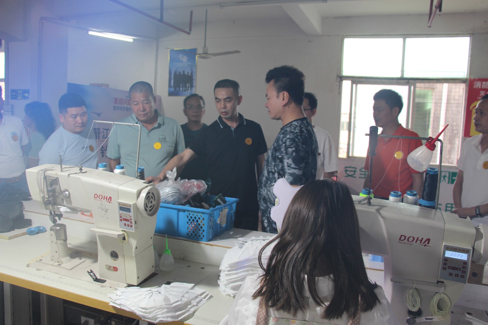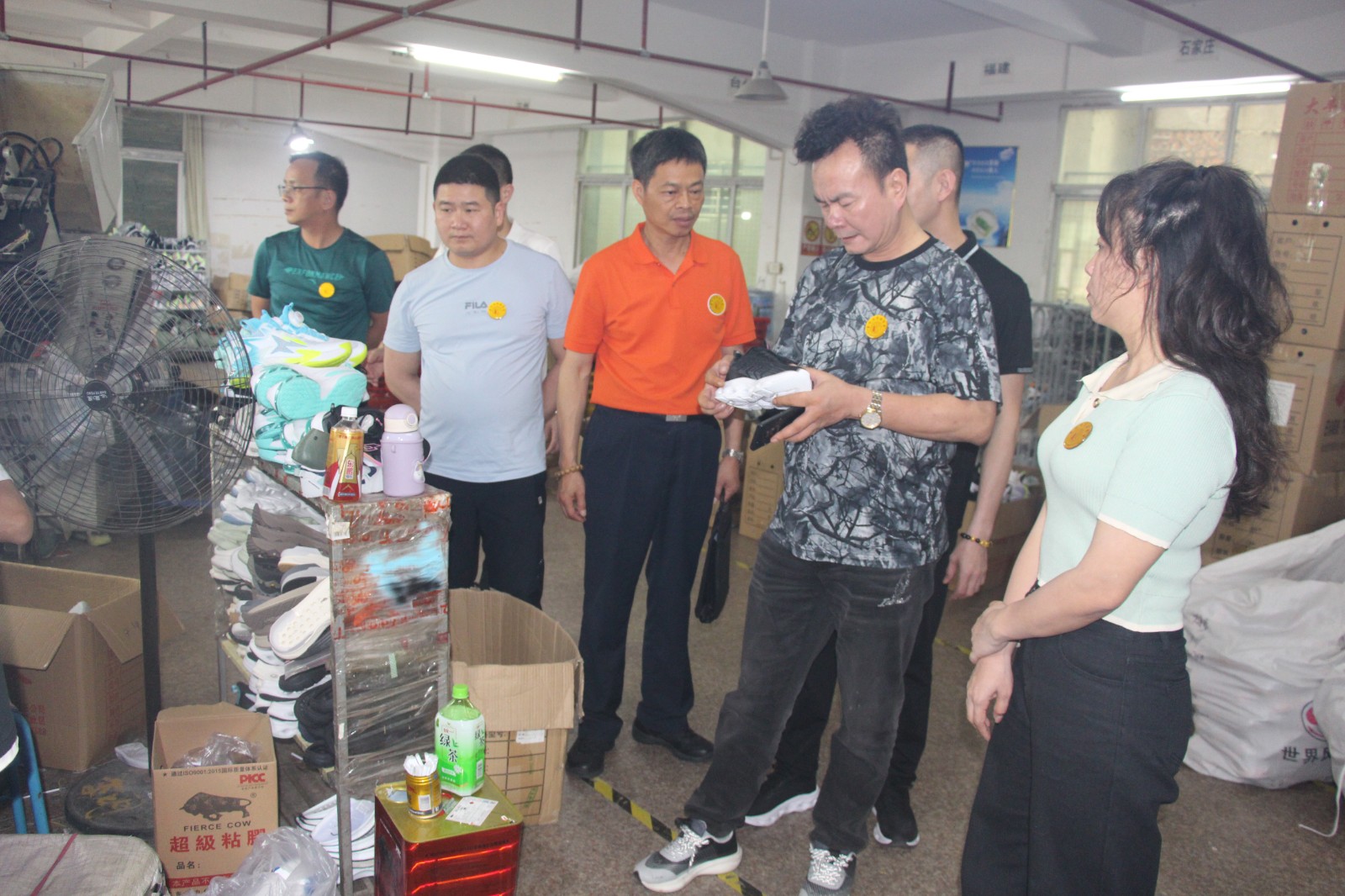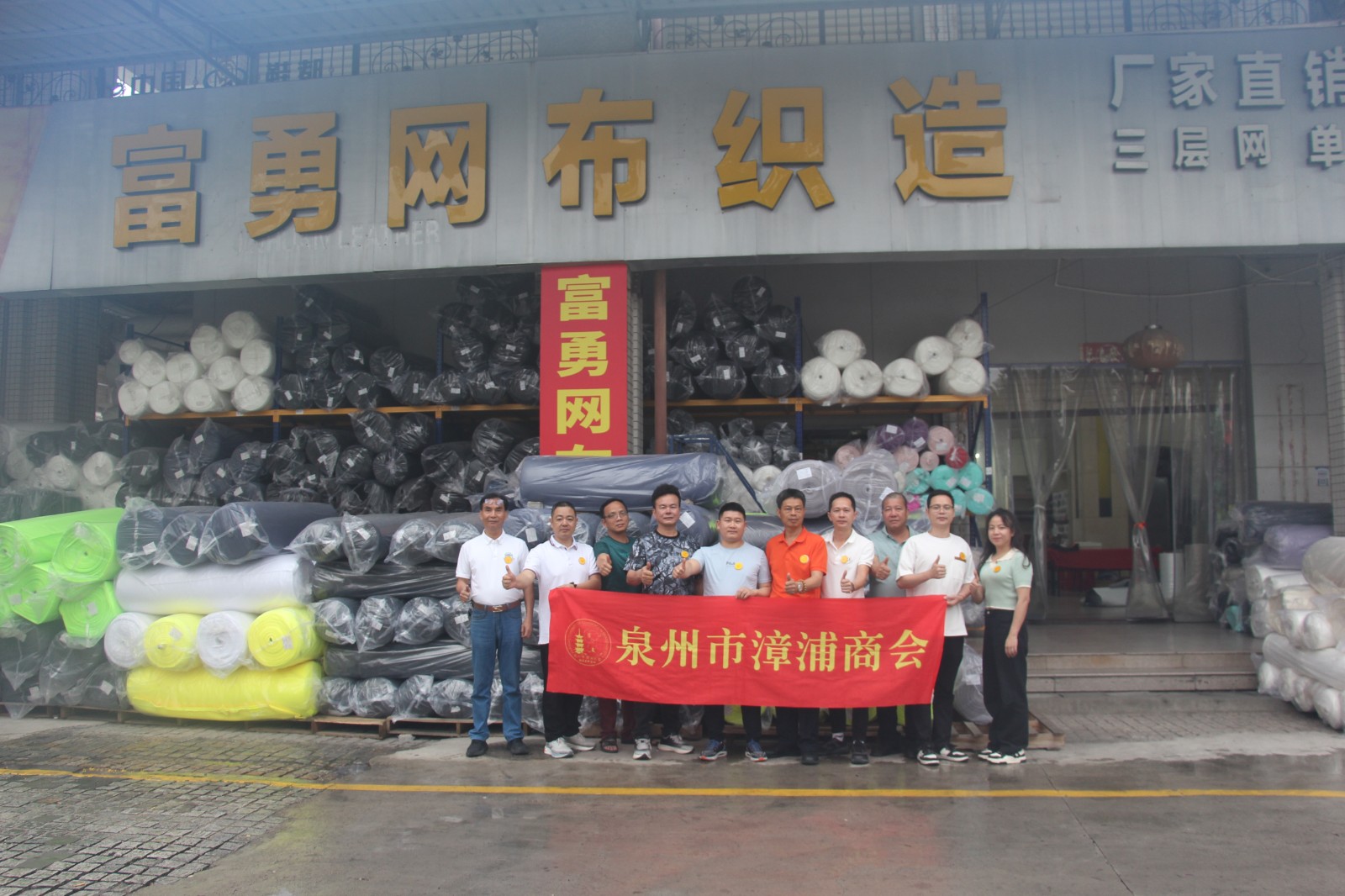 第四站,到晋江市陈埭中国鞋都L栋70-73号,泉州市富勇纺织科技有限公司。理事单位杨勇寿热情接待。
