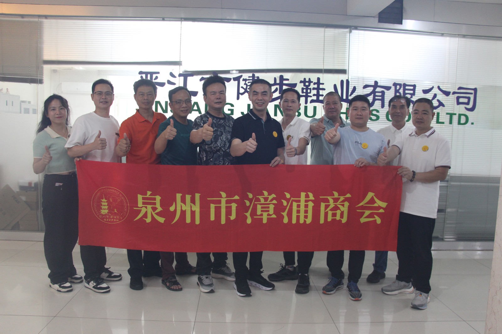第二站,到晋江市陈埭镇新坊脚村滨阳路37号,晋江市健步鞋业有限公司。副监事长单位蓝文通热情接待。