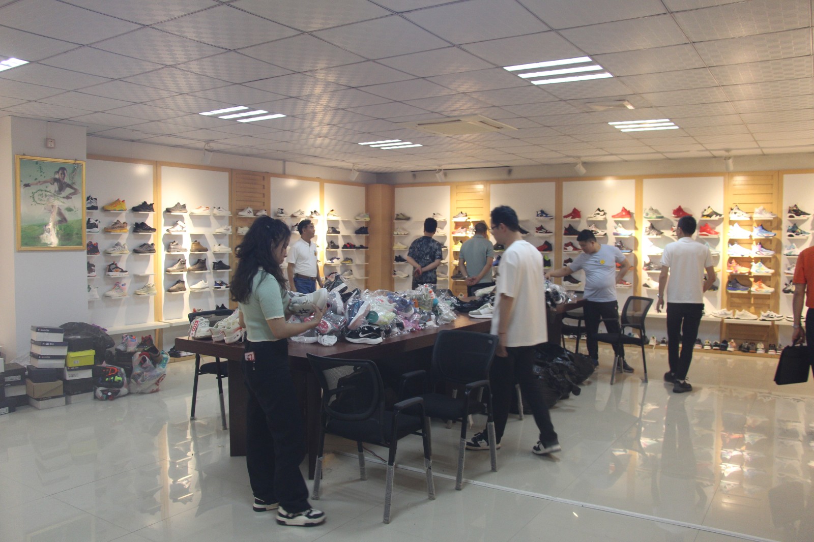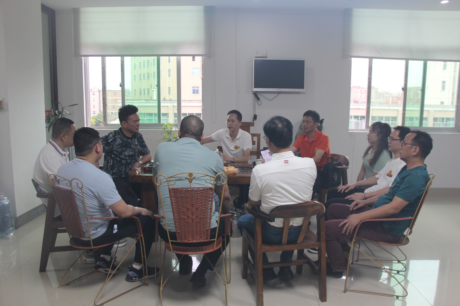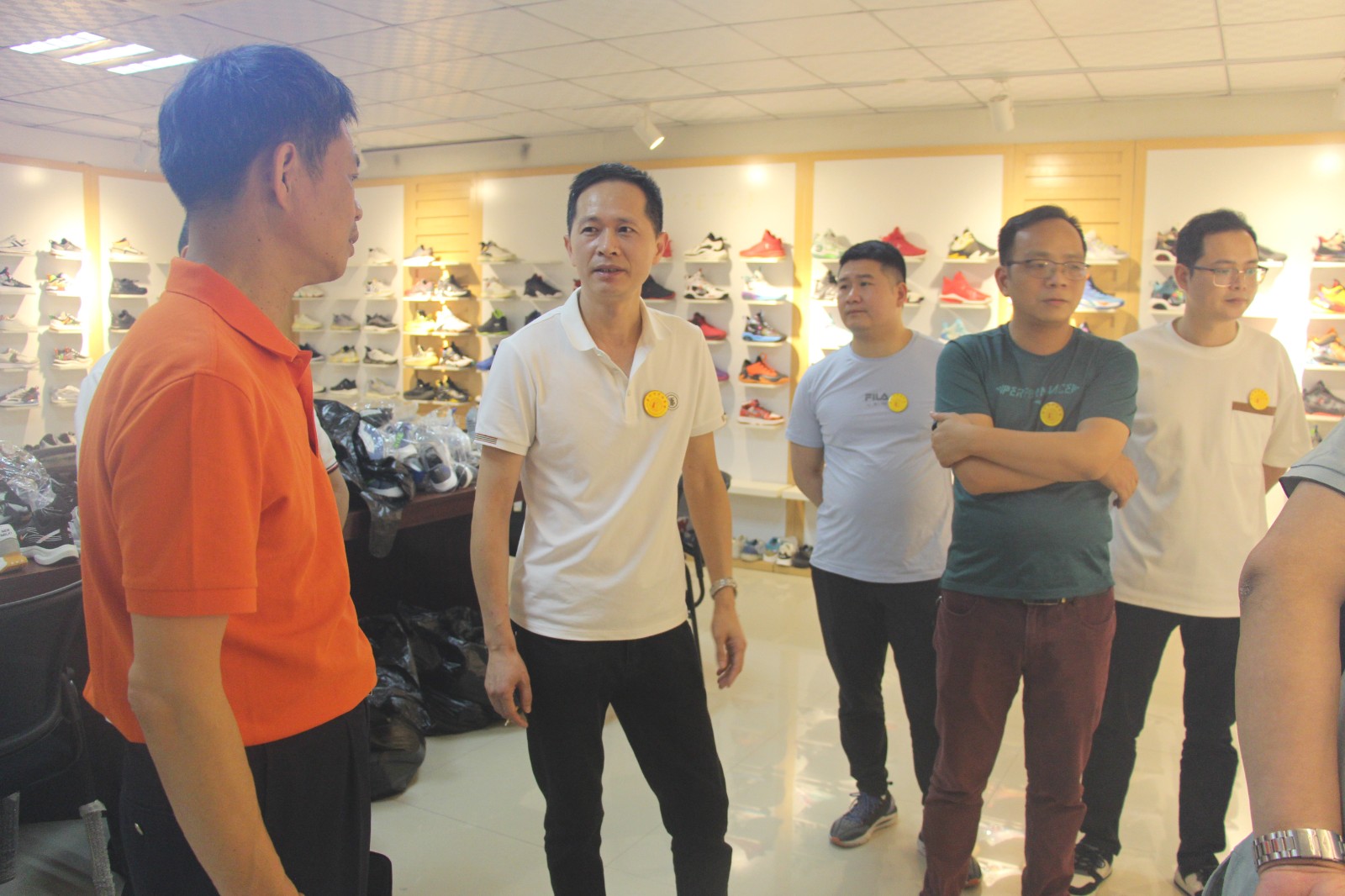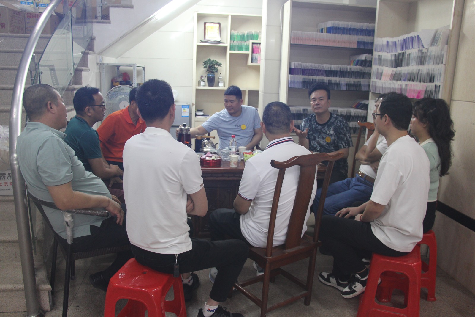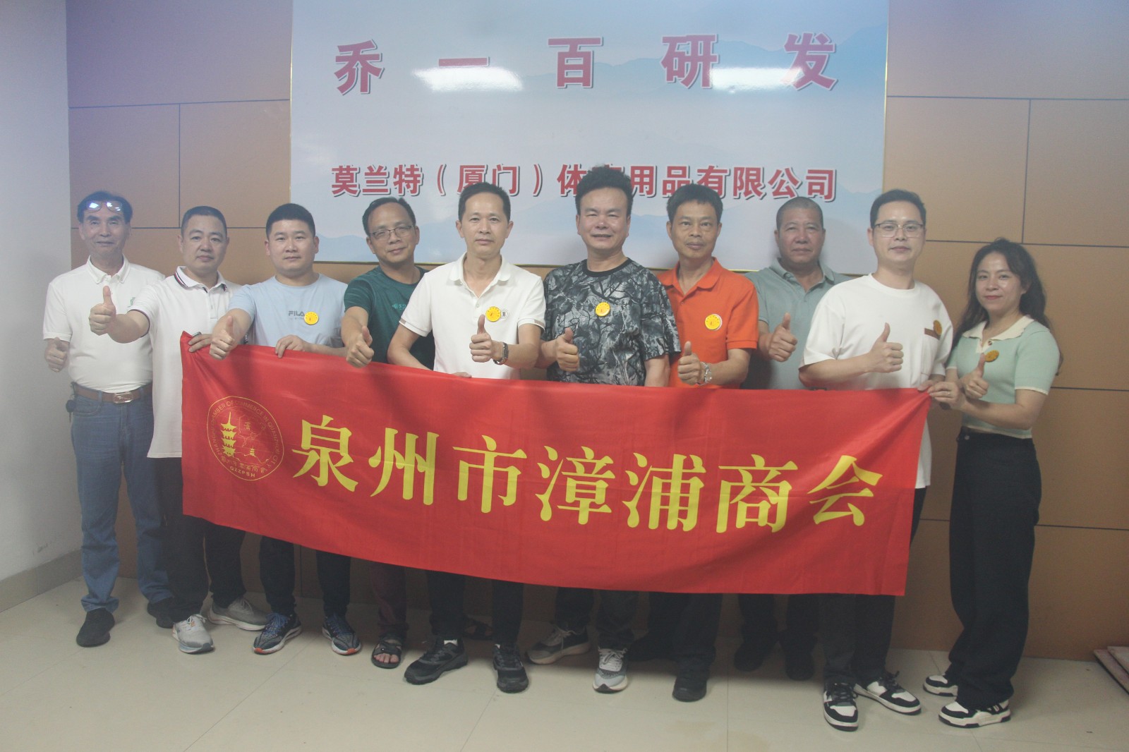 第三站,到晋江市陈埭镇鹏青南路明晖商务大厦4楼,乔一百鞋业研发中心。会员单位蓝左森热情接待。